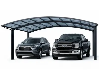 Our Japanese aluminum carports are built for long‑term durability and weather resistance. The anodized extruded aluminum frame resists rust and corrosion, and UV‑protective polycarbonate panels shield vehicles from sun, rain, and hail. These premium aluminum carports are designed to last for decades, far outperforming wood or standard steel alternatives.