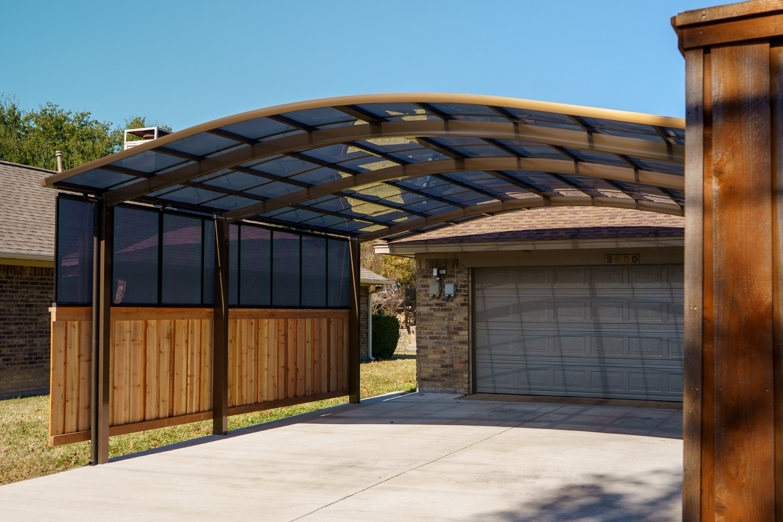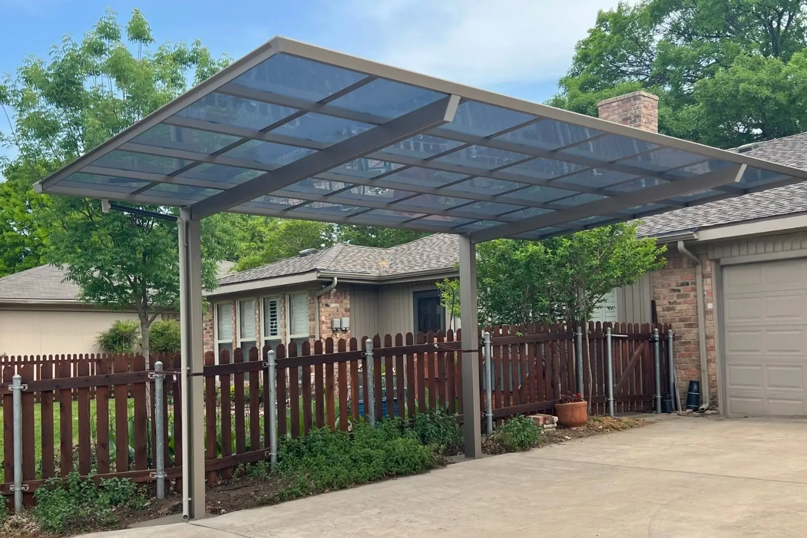 Installation depends on carport size and permitting. Single-car carports are typically completed in one day, while double or triple structures can take 1–2 days, depending on site conditions and any custom work. If permitting is required, this typically adds one to two days, since work cannot continue until the city completes required inspections. Once inspections pass, Patio Doctor completes the installation.