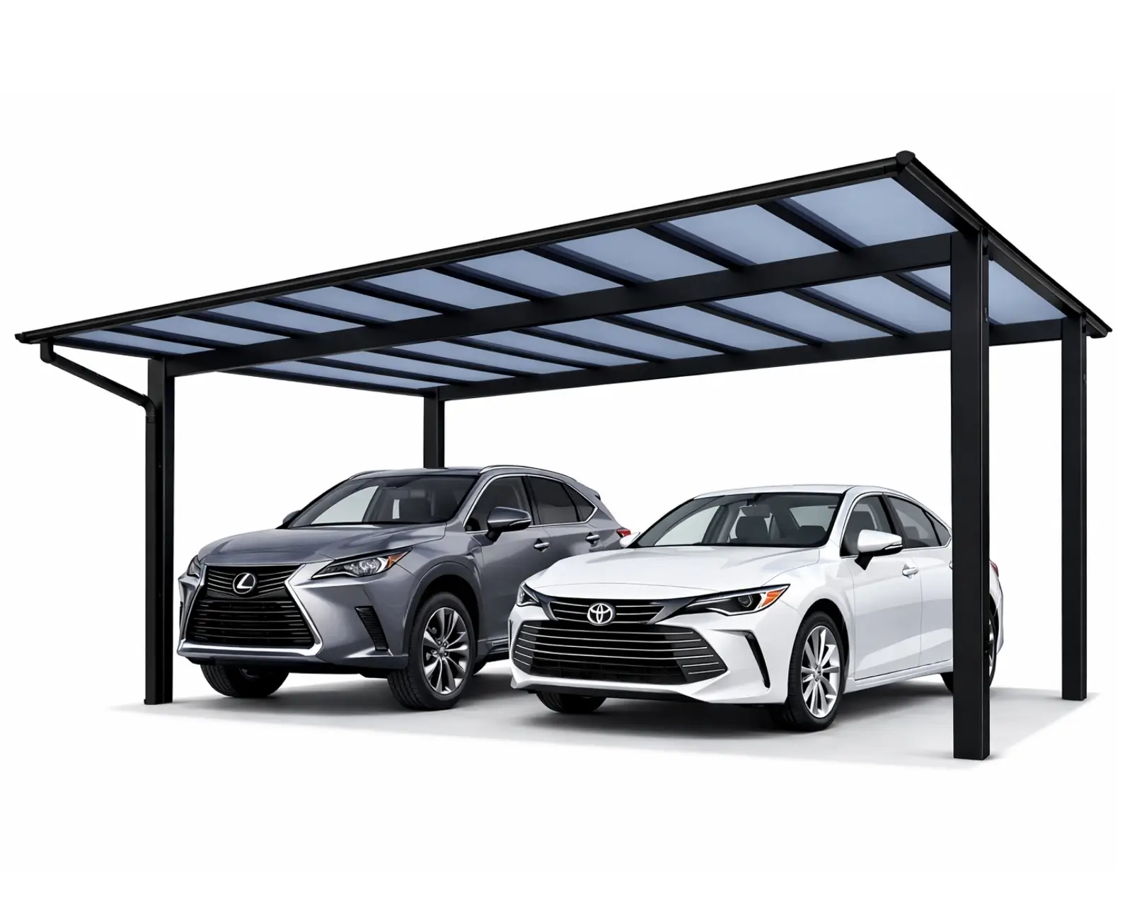 Our Japanese aluminum carports are built for long‑term durability and weather resistance. The anodized extruded aluminum frame resists rust and corrosion, and UV‑protective polycarbonate panels shield vehicles from sun, rain, and hail. These premium aluminum carports are designed to last for decades, far outperforming wood or standard steel alternatives.